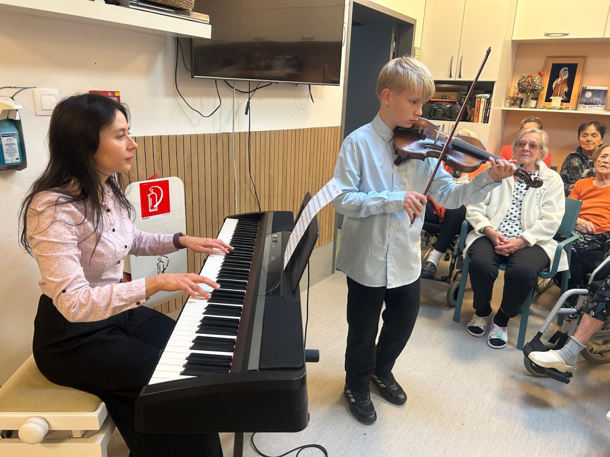 Október je “mesiacom úcty k starším” a pri tejto príležitosti sme vo štvrtok 23. októbra navštívili Domov seniorov Gerion v Záhorskej Bystrici a pripravili im malé vystúpenie. Predstavili sa žiaci z elokovaného pracoviska v Záhorskej Bystrici, klaviristi, speváci, flautisti a huslista. Malí hudobníci priniesli klientom zariadenia veľa radosti, potešili ich svojimi výkonmi a boli na záver ocenení medovníkmi, ktoré upiekli sami seniori.