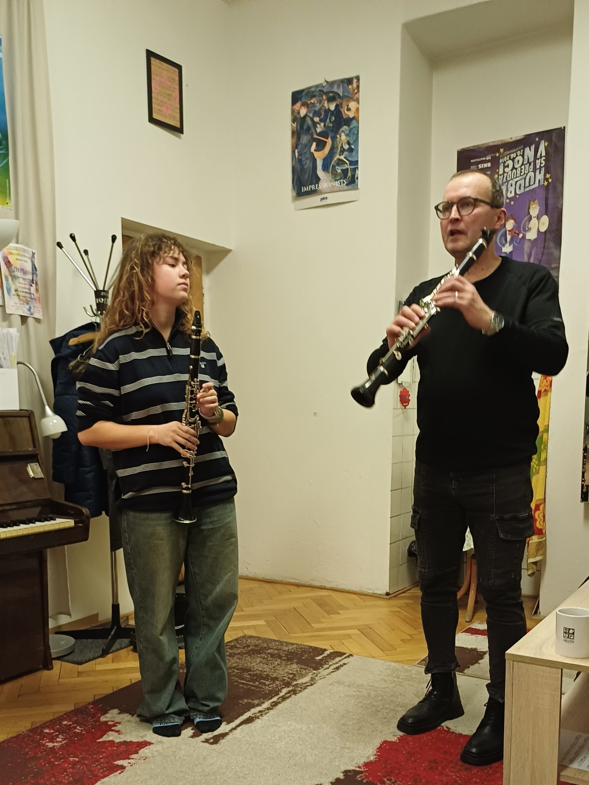 V utorok 25. novembra k nám osobne prišiel na ZUŠ Jozefa Kresánka lektor Ronald Šebesta, ktorý pracoval so žiačkou Nelou Harmanovou a podelil sa s ňou o svoje cenné know-how. Cieľom jeho práce je podporiť výchovu mladých nádejných klarinetistov a rozšíriť ich hudobné obzory. Dnešná návšteva tak predstavovala cenné obohatenie pre žiačku aj pedagógov, ktorí ju na jej hudobnej ceste odborne vedú.