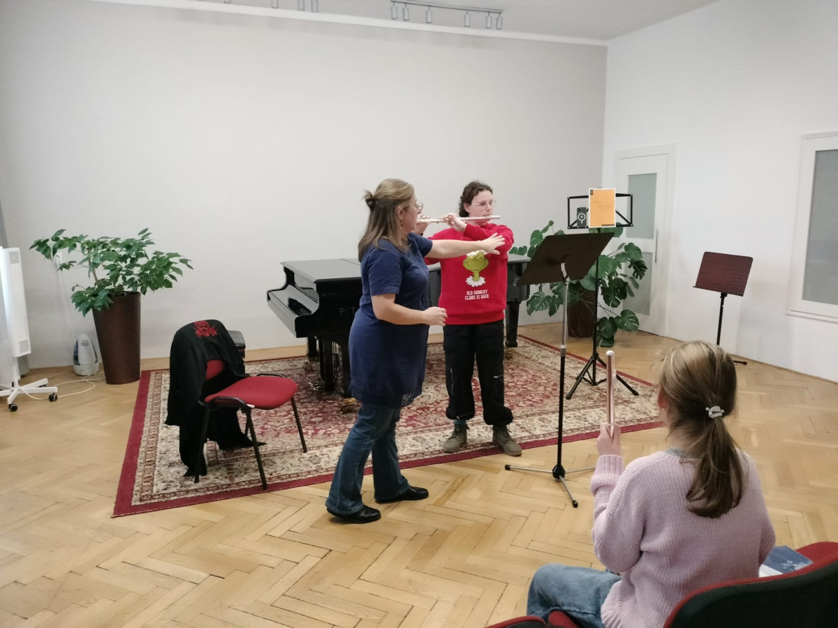 Dňa 30.1.2026 sa v Koncertnej sále školy na Karloveskej ulici uskutočnil flautový seminár na tému Začiatky hry na priečnu flautu s poprednou slovenskou flautistkou a pedagogičkou doc. Mgr. art. Ivicou Gabrišovou ArtD. Žiaci i pedagógovia si odniesli cenné rady, inšpiráciu a dobrú náladu.
